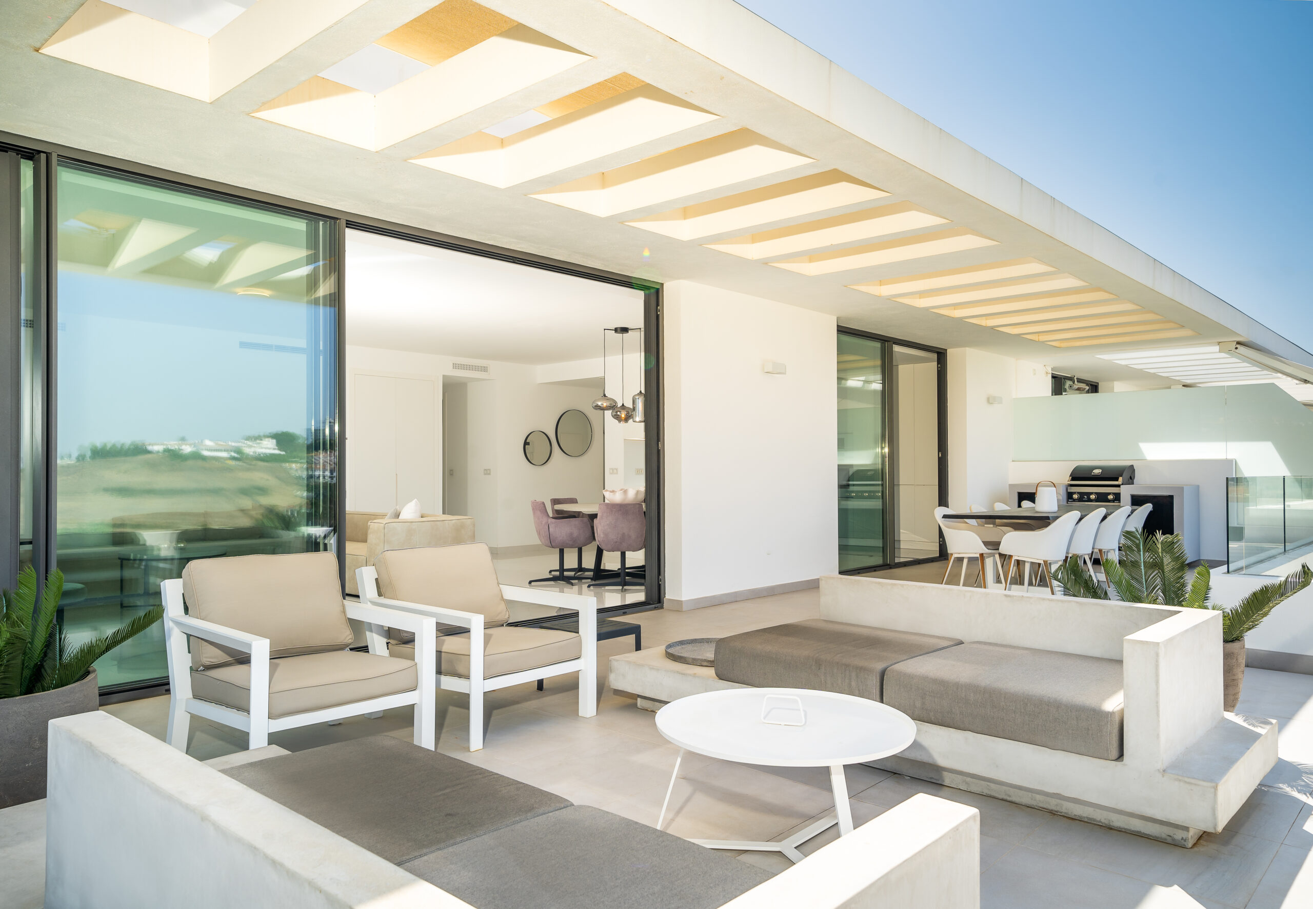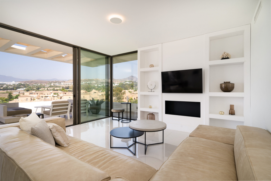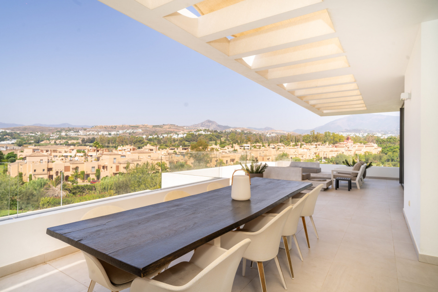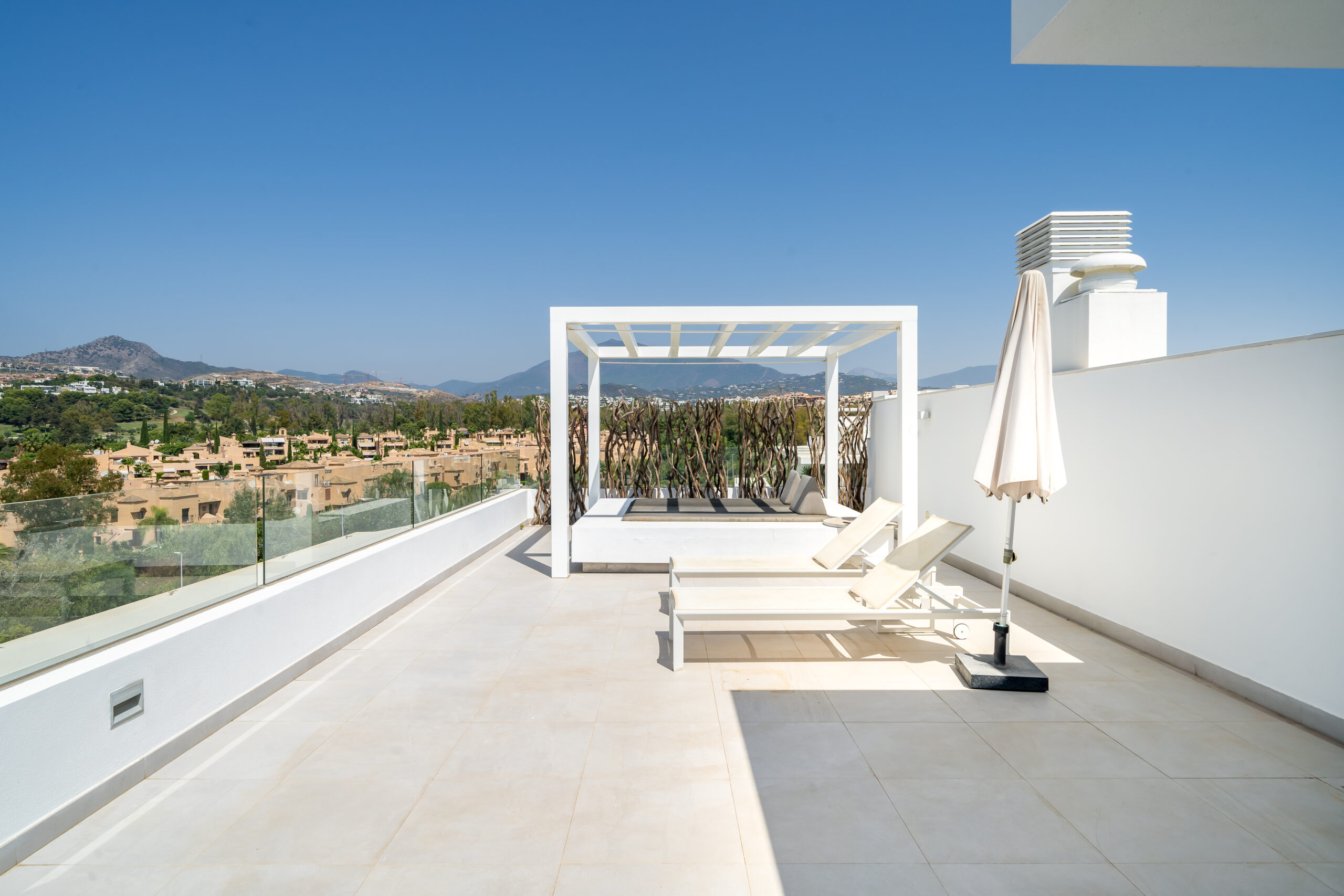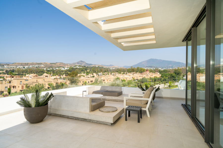 Presenting a beautiful modern duplex penthouse apartment in Cataleya (Estepona). This excellent location is close to all amenities, beaches and the Town of Estepona not forgetting the buzzing Town of San Pedro Alcantara, Puerto Banus and Marbella Town.