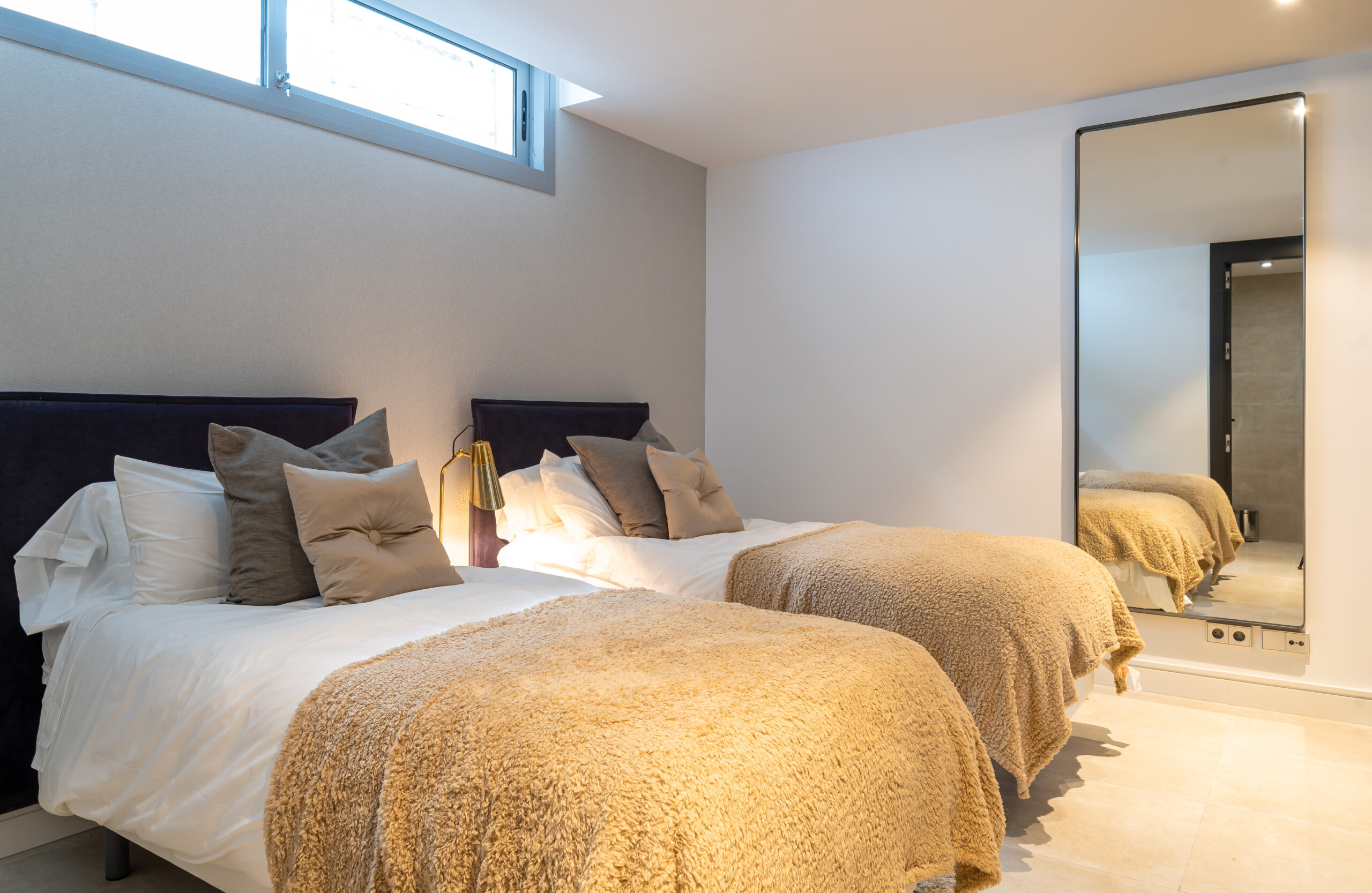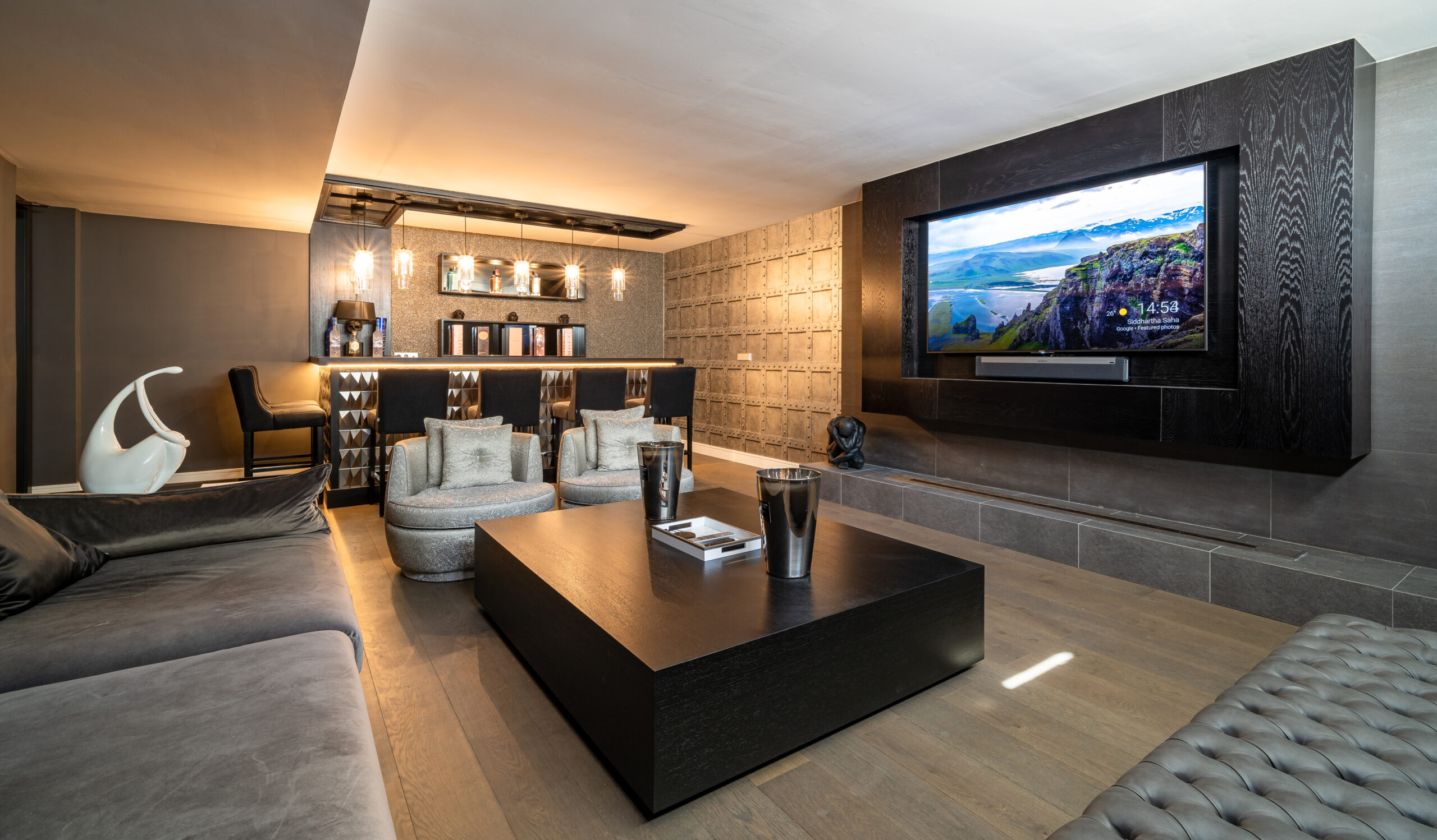 The villa includes a spectacular basement with a stylish bar, a state-of-the-art gymnasium featuring Eleiko gym equipment which takes training to another level of fitness. Also featuring is a exquisite comfortable cinema room. This area is perfect for entertaining and adds a touch of sophistication to the property’s facilities.