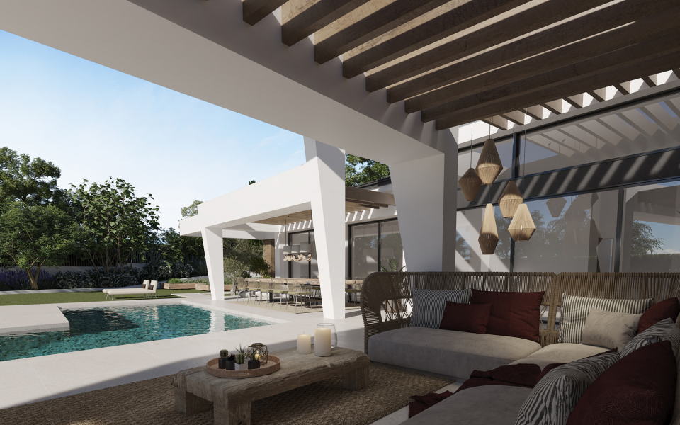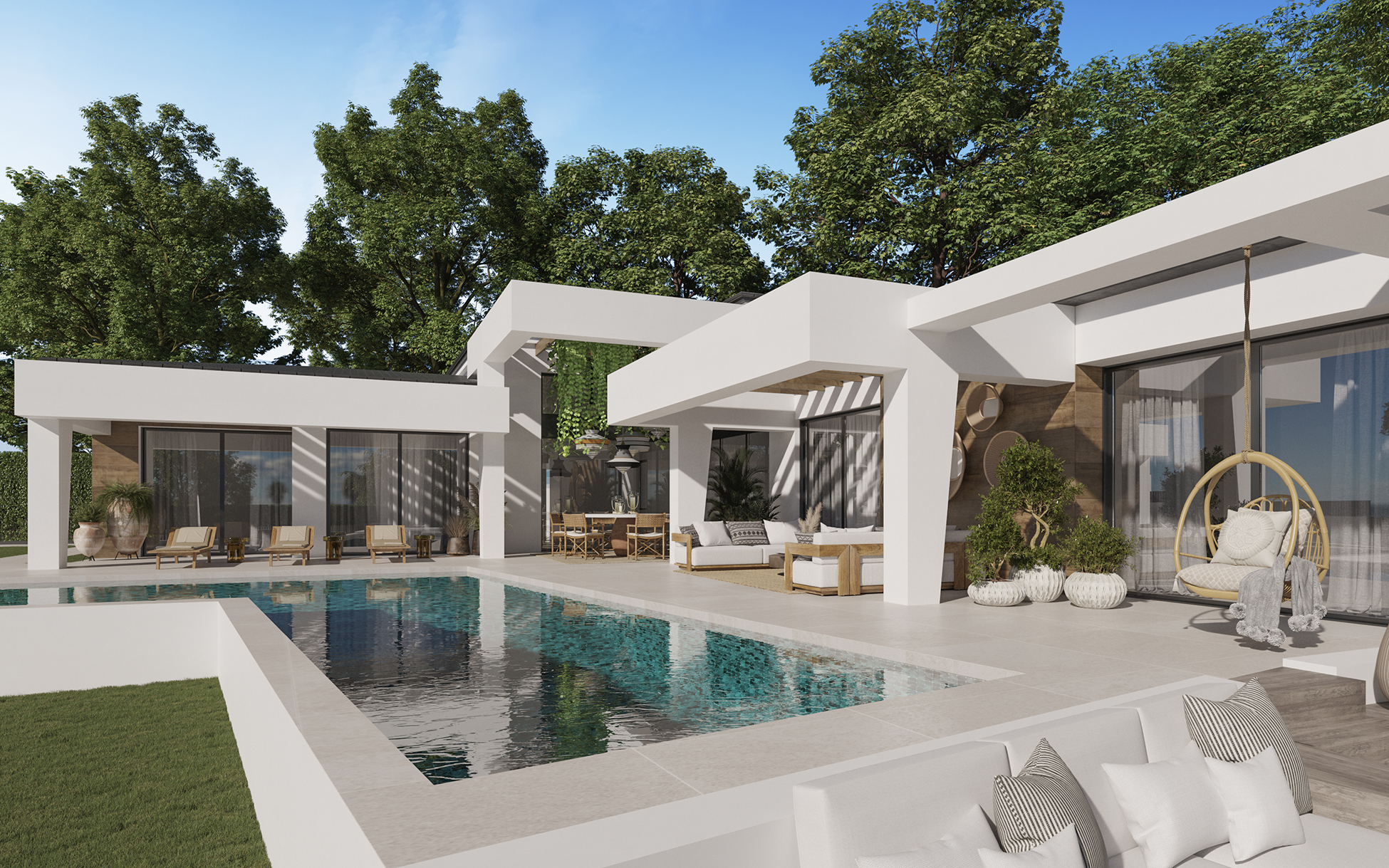 Marein Natura combines luxury and nature in an exceptional environment. Three unique villas built on one floor and designed to enjoy the Mediterranean lifestyle in a relaxed way, imagine melting into the sun’s rays, relaxing in the chill-out area by the pool, picking fresh vegetables from your own garden or letting you rock in a sunbed at sunset on a lazy summer afternoon.