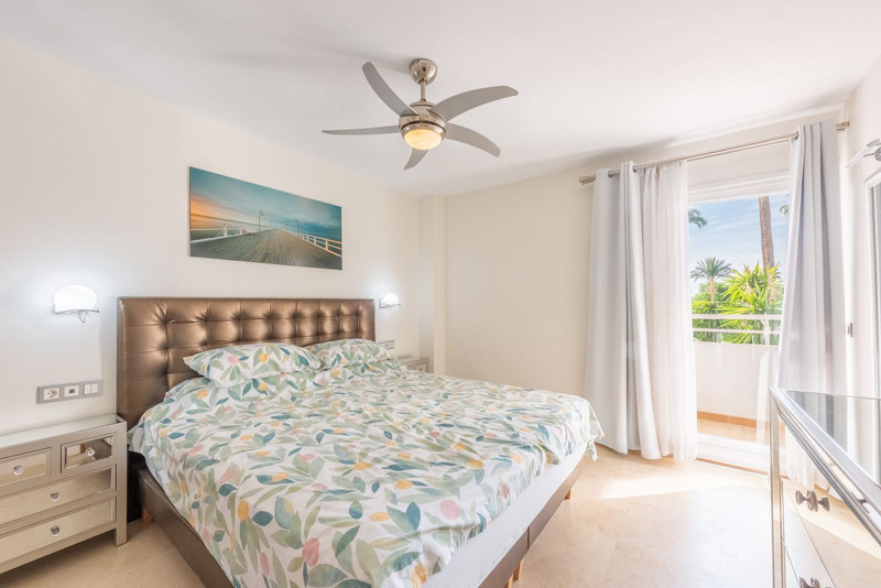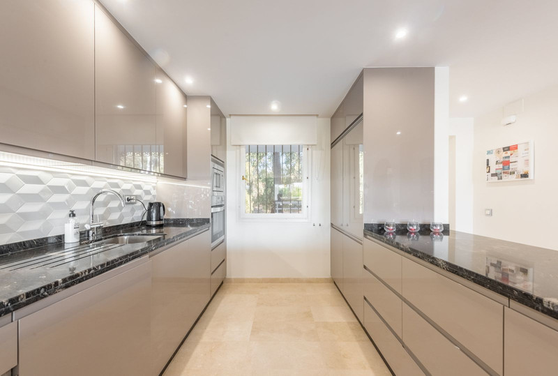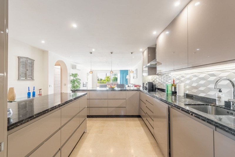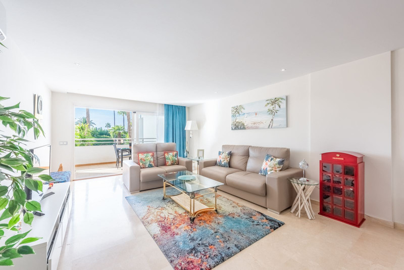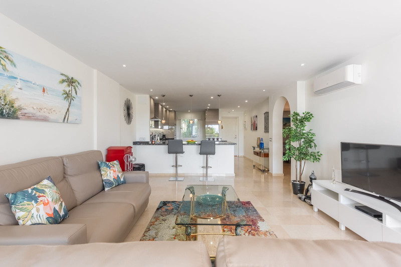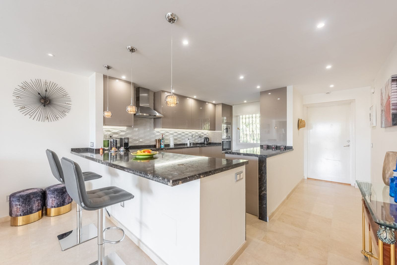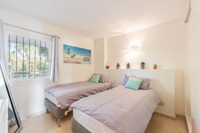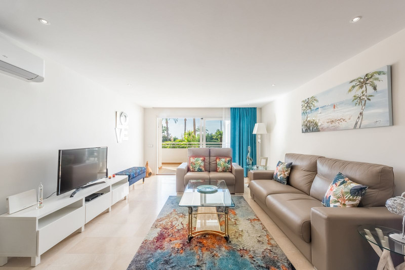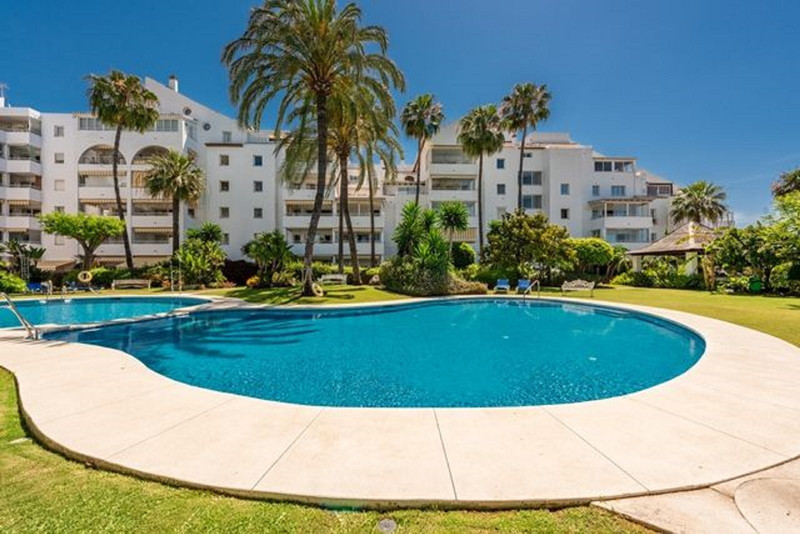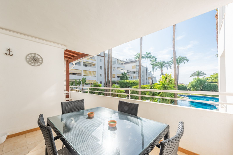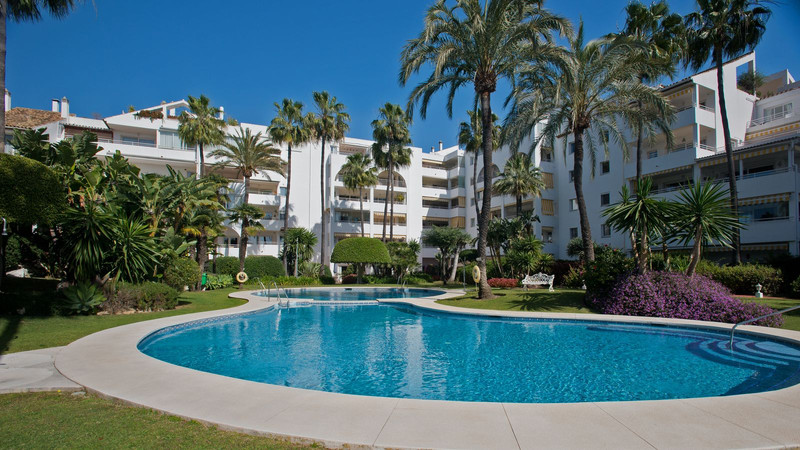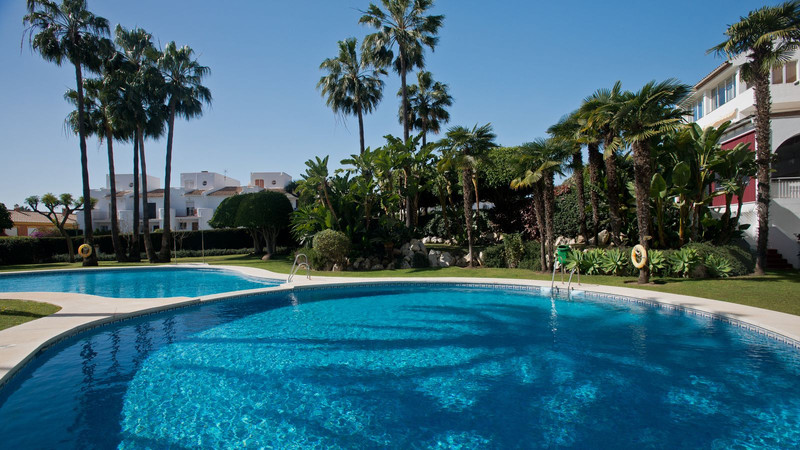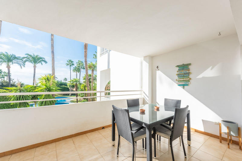 Lovely apartment in Nordic Royal Club, south facing with views to the beautiful tropical garden, the swimming pools and partially to the sea. This apartment has been refurbished with a stylish and beautiful kitchen, creating a comfortable and open-plan living area. The terrace is partly covered, south facing receiving sun from early morning untill late afternnon. The master bedrooom is spacious, has an en-suite bathroom and exit to the terrace. Guest bedroom and separate guest bathroom. The apartment is sold including an underground garage space and a storage room. Completed in 1990, The Nordic Royal Club is an exclusive enclave with 102 apartments that blend the best of Andalucian charm with the comforts and conveniences of today. High-quality Swedish construction technology and materials provide the tasteful luxury one expects, and the professional service organisation is far superior to any other property on the Costa del Sol. NRC provides round-the-clock security with a multilingual staff and state-of-the-art closed-circuit security cameras. Via an internal call system or panic alarm button placed in each apartment, you receive immediate attention when requested. Smoke alarm systems are also placed in every apartment for additional safety. When you travel, your apartment is secure with someone to look after your belongings. NRC is offering the highest of standards and qualities in material and construction. Doors, windows and even bathroom fittings have been specially imported from Sweden – and noise and temperature insulation are ensured by modern wall cavity methods and double glazing windows. NRC is ideally located in Nueva Atalaya (Estepona) 45 minutes drive from Malaga or Gibraltar airport, and just 5 minutes drive west of Puerto Banus, easy access by car or bus from the coast road A7 – still close to shopping, golf courses, sandy beaches and communication. Thanks to its high position, there are clear views of both mountains and Mediterranean sea with the African coastline to the south and the rock of Gibraltar to the west