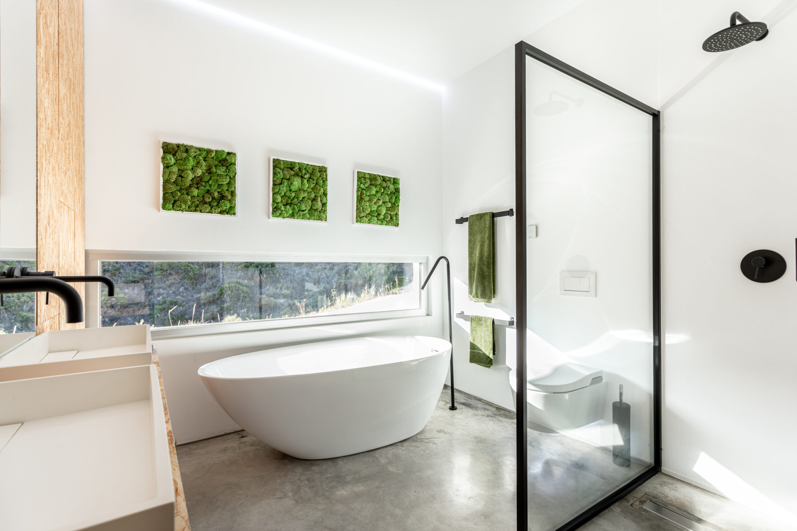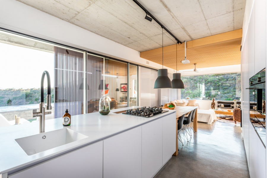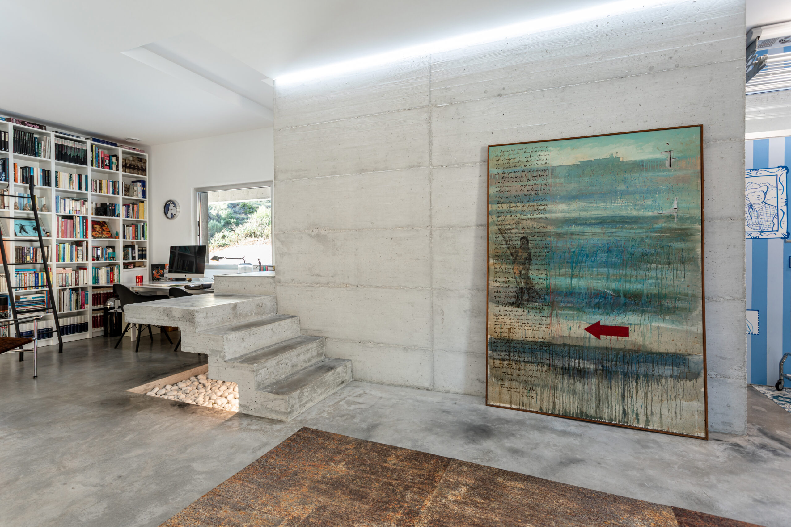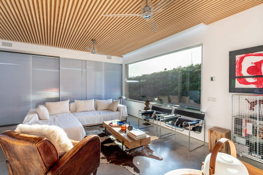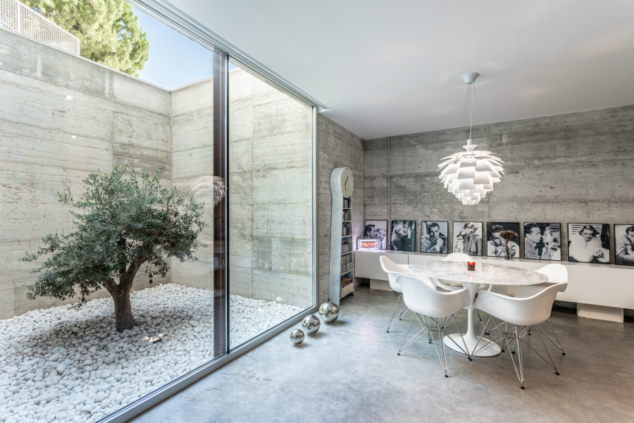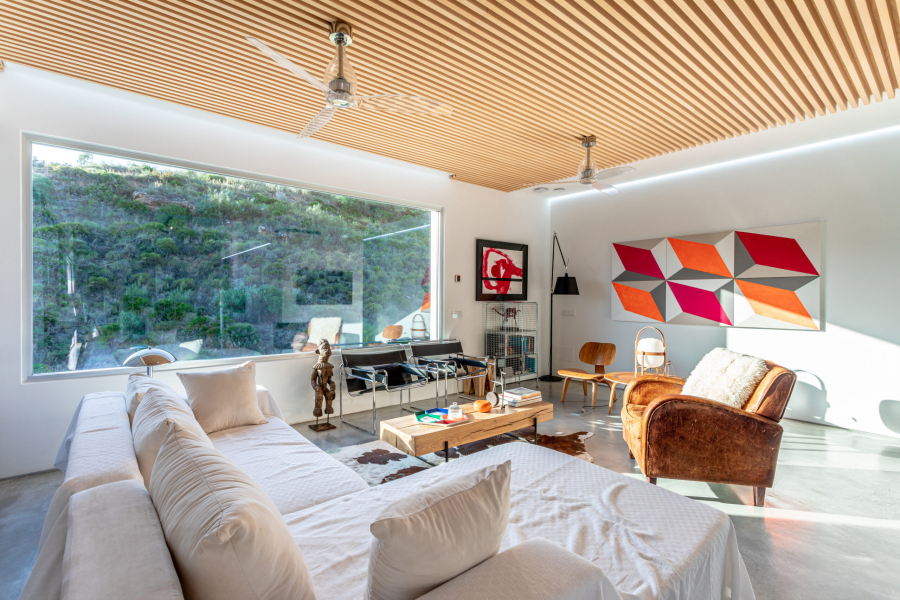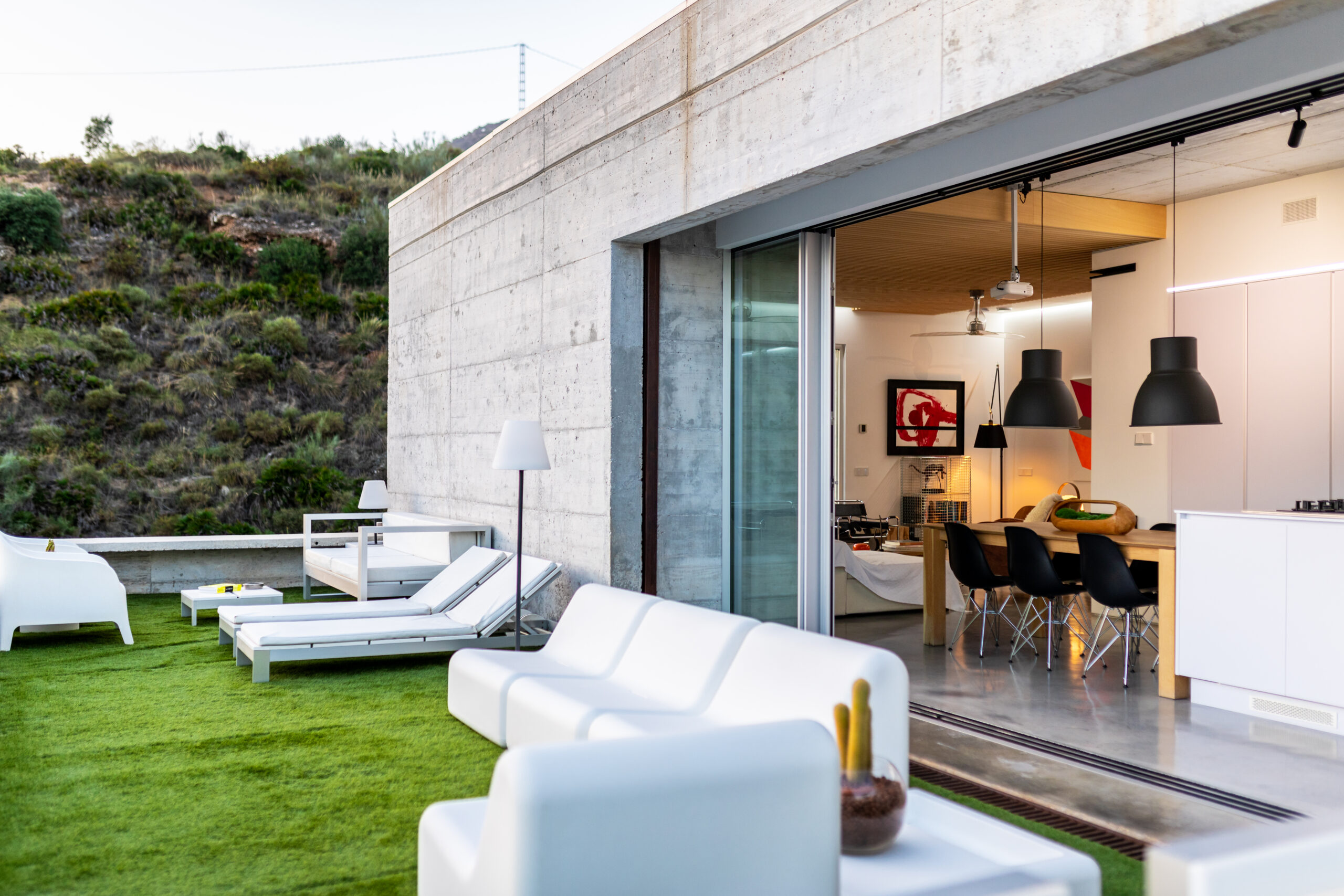 The house borders to the west with a stream, and to the north with a green area, overlooking a monumental pine forest of the Sierra de Mijas. Designed by the renowned architect Elisa Valero Ramos, known in the architecture sector as the architect of concrete, she has managed to create a house integrated into the environment, minimally invasive and sustainable, obtaining the highest Energy Efficiency Rating A.It consists of 3 levels, on level 0 at street level, which is accessed through a walkway, we find a courtesy toilet with a built-in natural sunlight irradiator, a living room with a corner fireplace, a dining room, a pantry and an open kitchen, with a large window in the living room that overlooks a large natural vertical garden with native species; On this floor there is access to the terrace with a 12-meter panoramic saltwater pool.